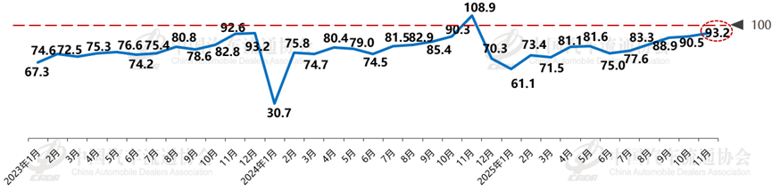 入店分指数:2025年11月入店分指数为89.9,较上月有所上升。厂商及经销商将在12月延续并加码年底冲量促销举措,持续促进消费者到店意愿提升;叠加春节前购车需求季节性攀升,将共同推动到店客流的增长。